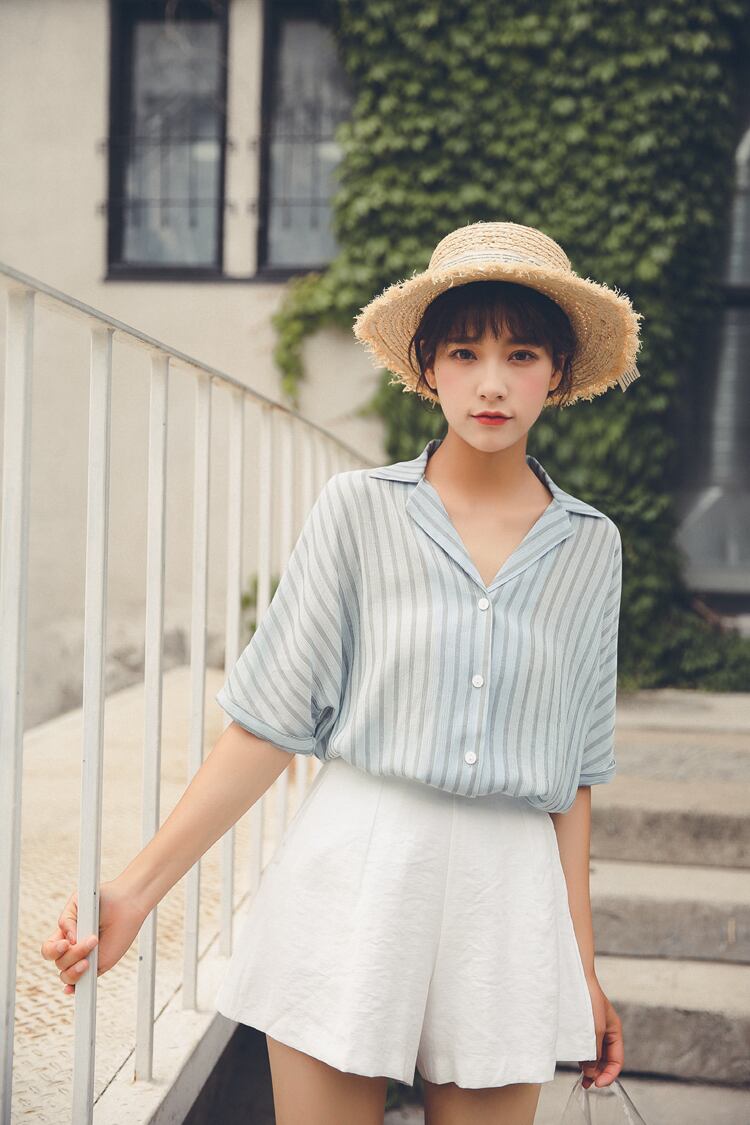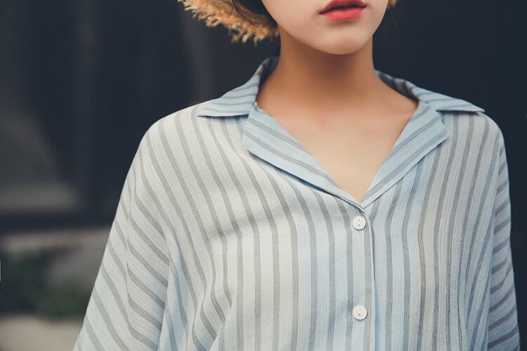 爽やかなミントグリーンが涼しげなきれいめストライプシャツ♪