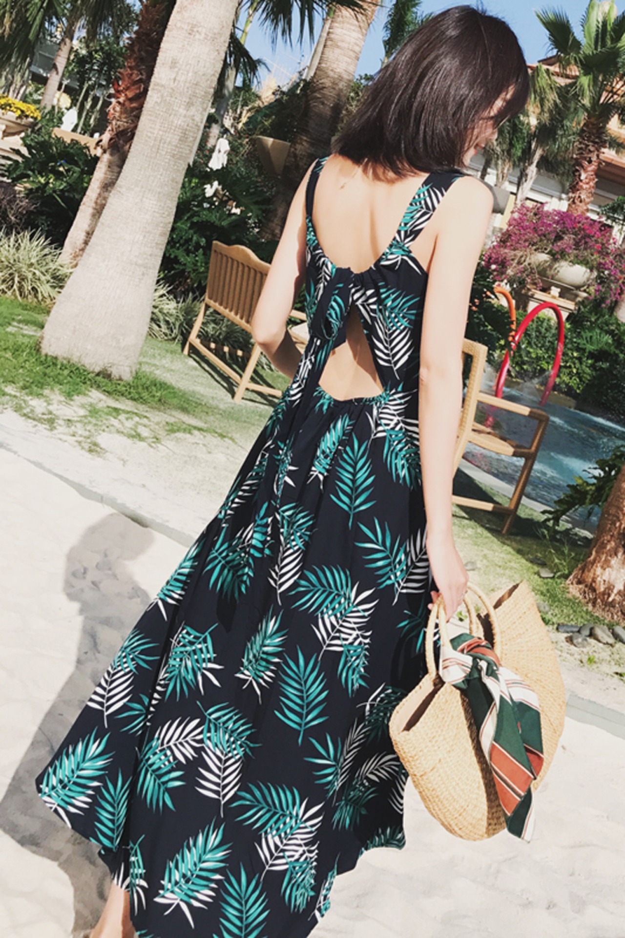 背中がセクシーなワンピース。