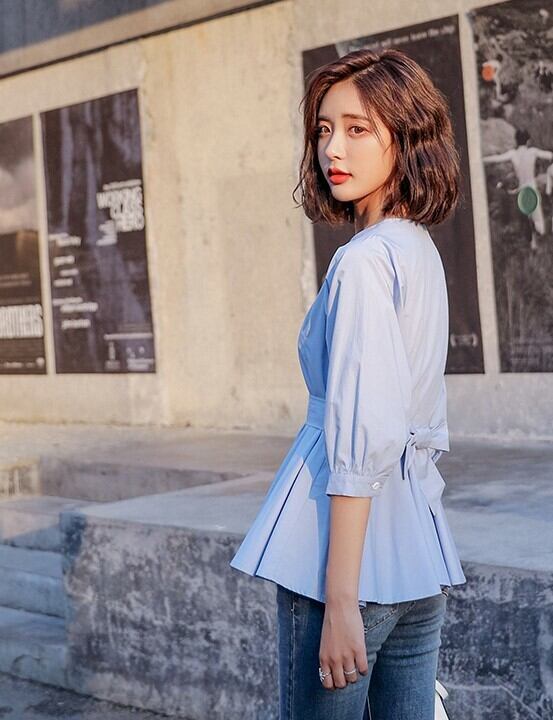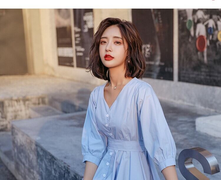 ブルー ミドル袖
