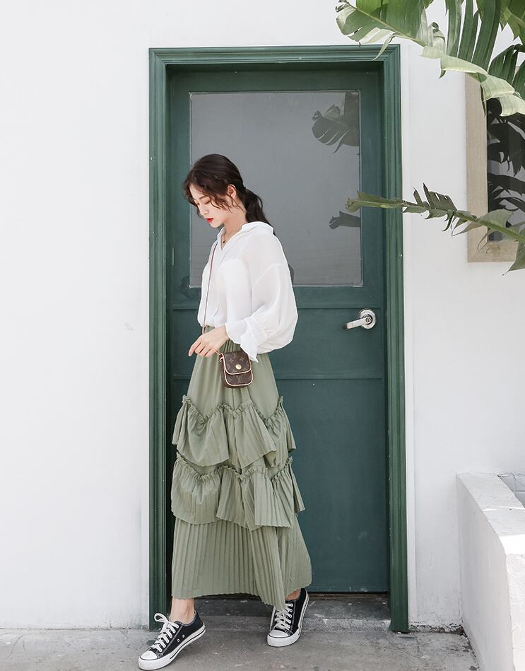 ウエストはゴムなので履きやすく、ボリューム感たっぷりの裾は華やかな雰囲気を演出してくれます。