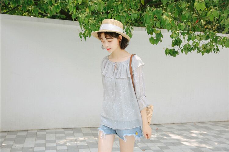 胸元のフリルと透け感がトレンドライクで、とってもフェミニンなアイテムです。