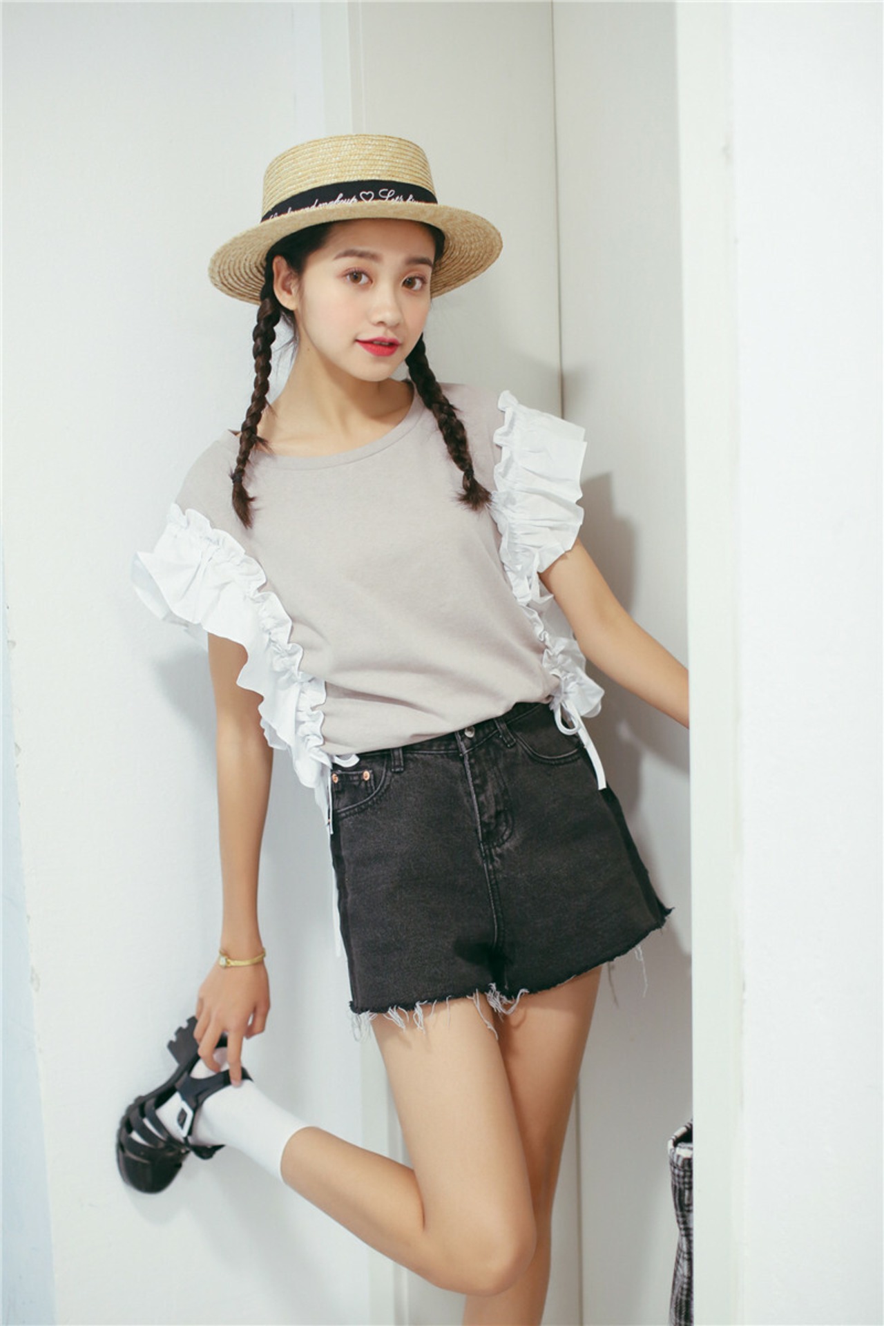 サイドのボリュームたっぷりなフリルが可愛いTシャツ♪