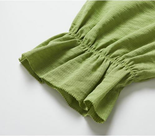 袖や上半身のギャザーが体に程よくフィットする女性らしさあふれるデザインとなっております。