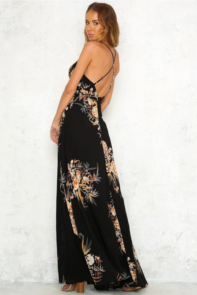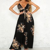 大胆に開いた胸元や背中・スリットが目を惹く、大人っぽくセクシーな雰囲気のロング丈キャミソールワンピースです。