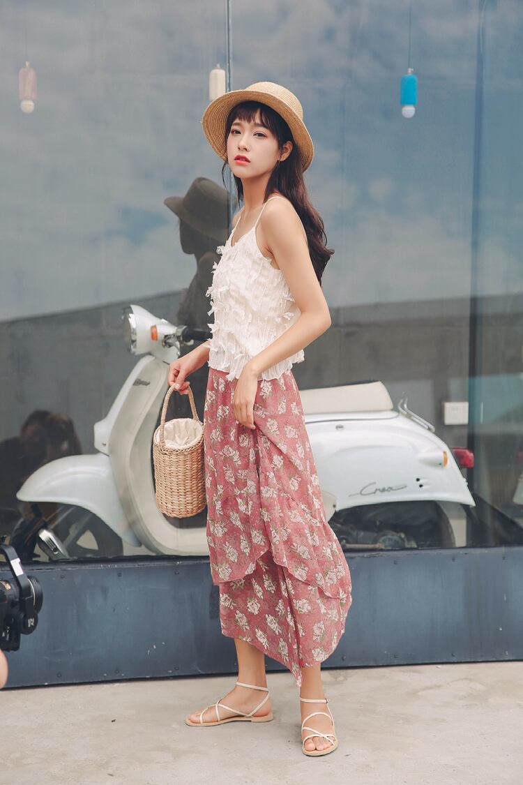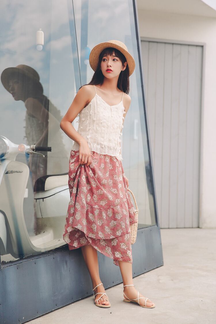 立体感のあるディテールをあしらったキャミと花柄プリントスカートのセットアイテムです♪