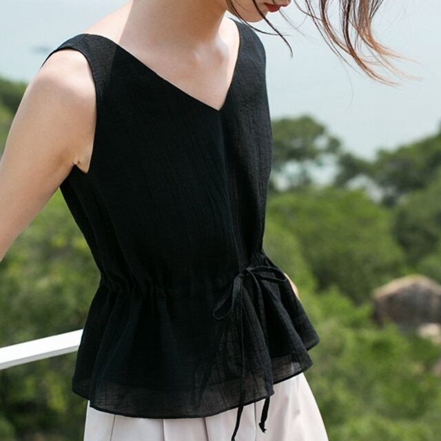 大人のこなれたコーデにマッチする、シンプルなノースリーブブラウスが仲間入り◎