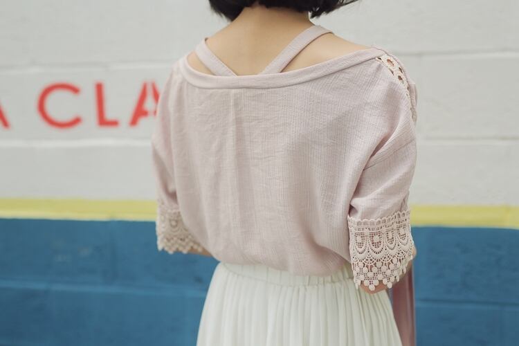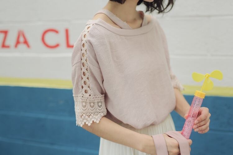 涼し気な生地感の透かしレースがフェミニンなブラウスです♪