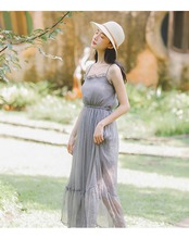 程よい透け感のグレーがかわいいトレンドのキャミワンピです。
