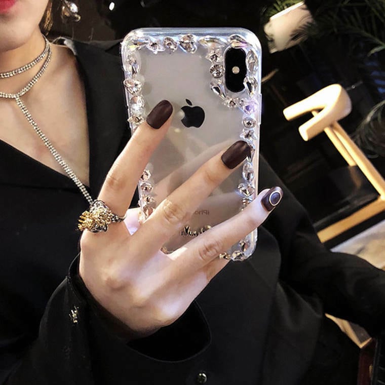 iPhone ケース カバー クリア 宝石 キラキラ シンプル 高級感 おしゃれ 5 5s SE 6 6s 6plus 6splus 7 8 7plus 8plus X Xs XR Xsmax YN-4-66 | dress_sugar_moon