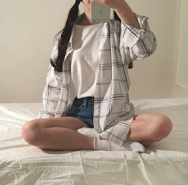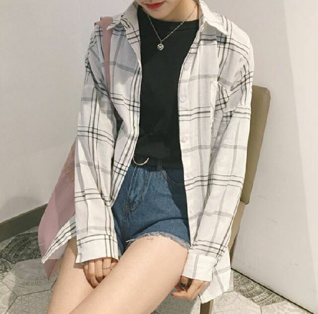 シャツ ブラウス 春夏 長袖 チェック柄 シンプル お出掛け デート KR-4-155 | dress_sugar_moon