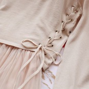 トップスのサイドの編み上げリボンが
