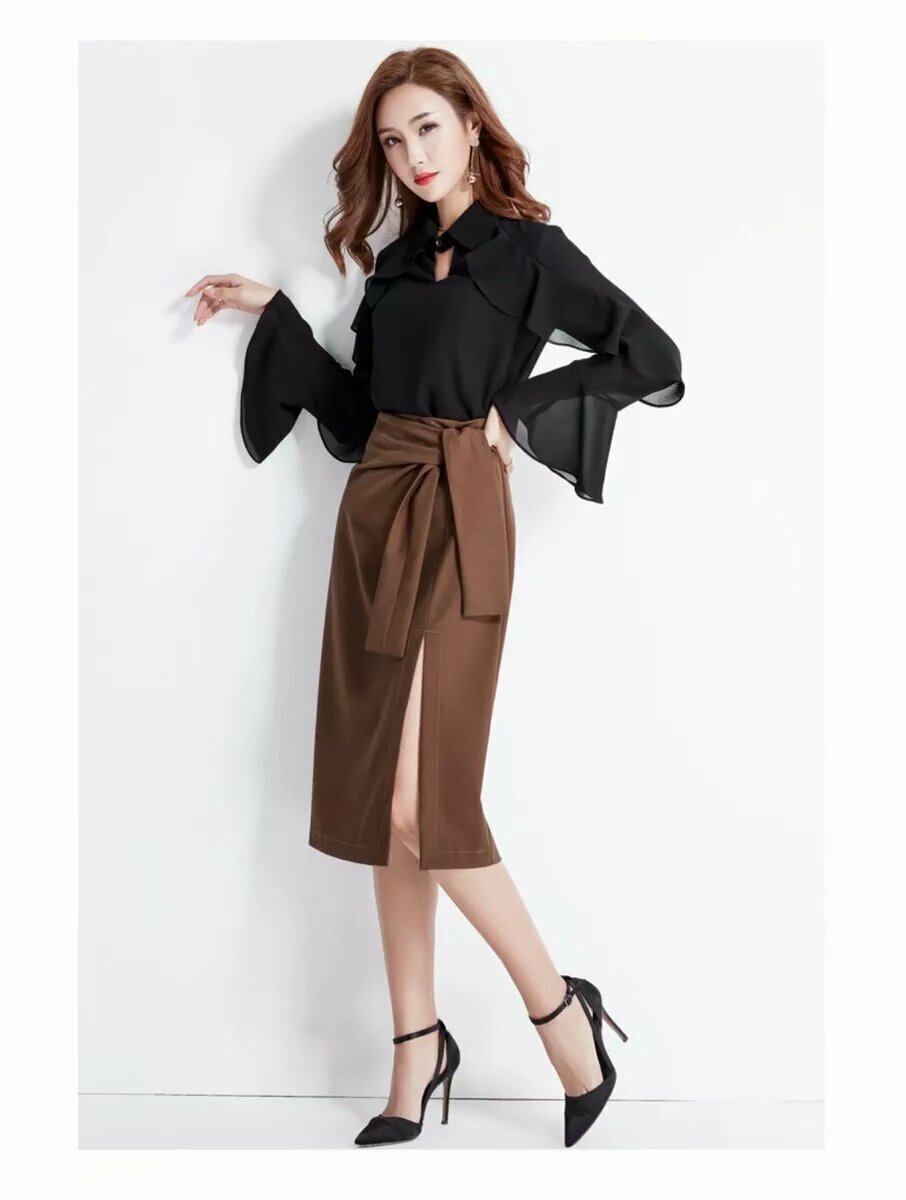 春 夏 レディース スカート ミモレ丈 ミモレスカート スリット ハイウエスト ウエストリボン 無地 シンプル エレガント デート お呼ばれ パーティー オフィス 2色 SY-5-73 | dress_sugar_moon