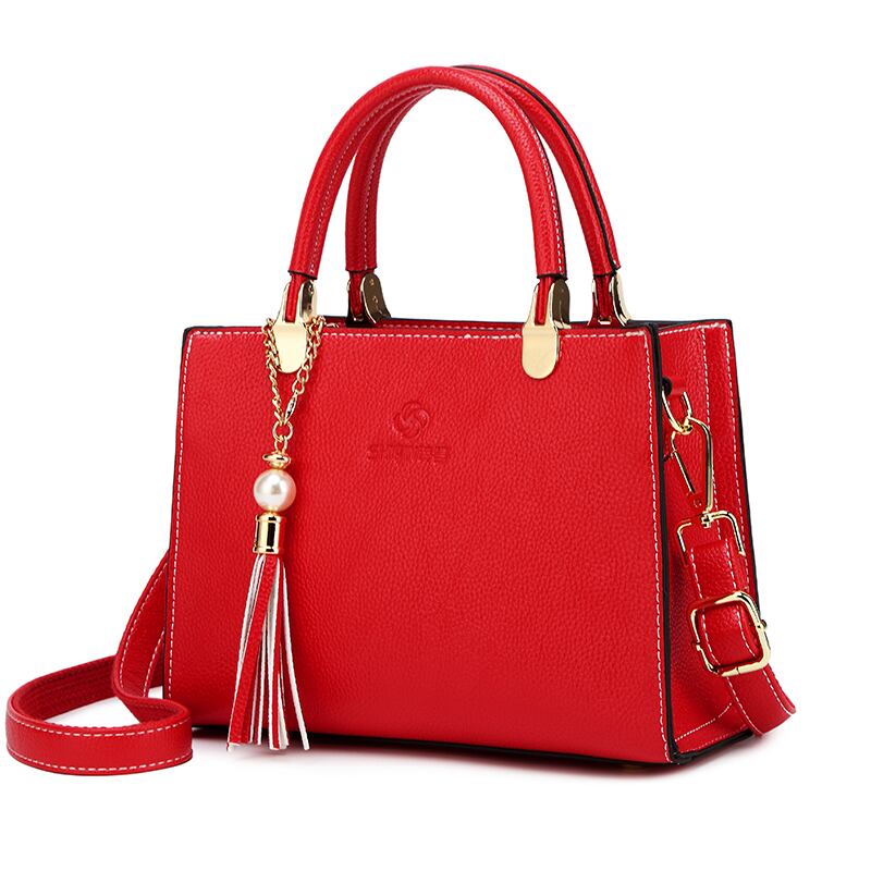 春 夏 レディース バック 鞄 バック ハンドバック ショルダーバック 無地 大容量 キュート 普段使い お呼ばれ デート パーティー タッセル 赤 SY-5-76 | dress_sugar_moon