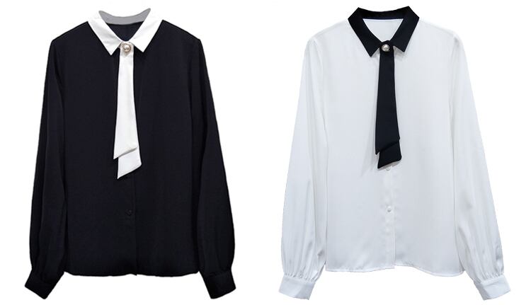 春 夏 レディース トップス ブラウス ゆったり シャツブラウス 2色 長袖 バルーン袖 ネクタイ 大人 クール 普段使い デート 女子会 お呼ばれ オフィス SY-5-89 | dress_sugar_moon