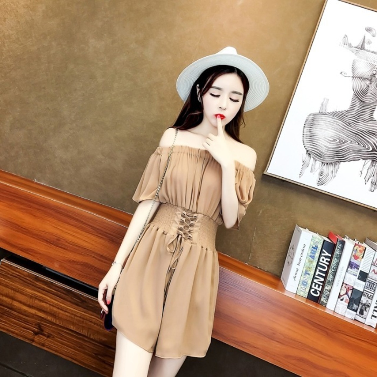 春 夏 レディース オールインワン サロペット 大きいサイズ ゆったり 3色 ハイウエスト 半袖 無地 キュート オフショル わ透け感 デート 女子会 SY-5-125 | dress_sugar_moon