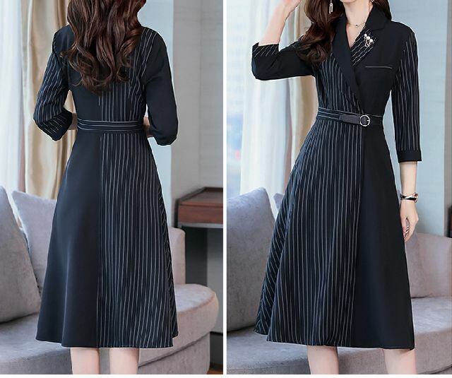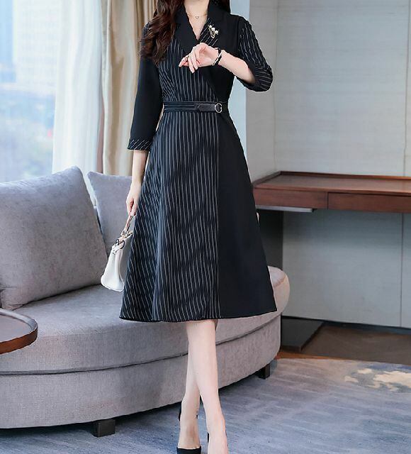 春 夏 レディース ワンピース ロング丈 ロングワンピース 大きいサイズ オフィス ハイウエスト ストライプ切り替え お出掛け デート 結婚式 お呼ばれ かわいい おしゃれ 20代 30代 KR-5-046 | dress_sugar_moon