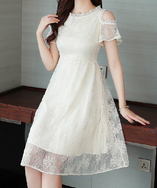 春 夏 レディース ドレスワンピース 大きいサイズ 白ドレス 半袖 結婚式 膝丈 レース 刺繍 肩だし 透け感 お出掛け デート お呼ばれ おしゃれ かわいい KR-5-047 | dress_sugar_moon