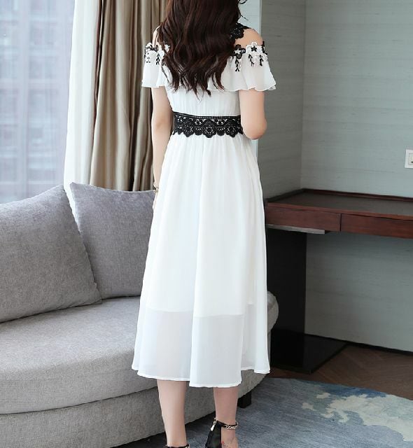 春 夏 レディース 花柄 ワンピース 白 レースワンピース シャツワンピース マキシ丈 大きいサイズ 刺繍 フリル ハイウエスト オフショルダー お出掛け デート 結婚式 お呼ばれ おしゃれ かわいい KR-5-049 | dress_sugar_moon