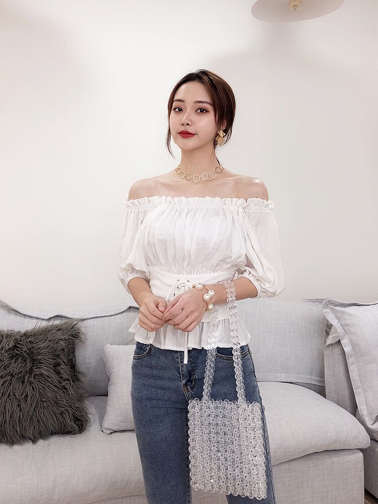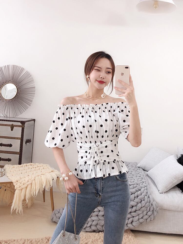春 夏 レディース フリルトップス オフィス おしゃれ 水玉 着痩せ トップス 大人 2色 オフショル ハイウエスト ウエストベルト キュート おしゃれ デート 女子会 普段使い SY-5-145 | dress_sugar_moon