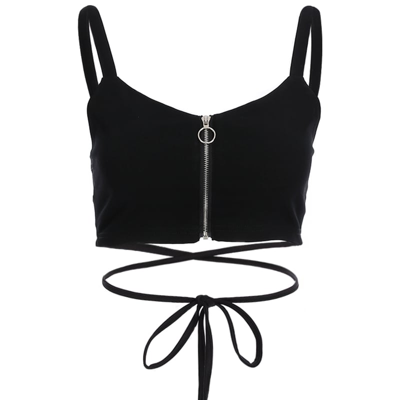 夏 レディース セクシー トップス 韓国 キャミソール サテン 袖丈なし ノースリーブ クロスストラップ 黒 ブラック へそ出し ショート丈 普段使い デート 女子会 SY-5-146 | dress_sugar_moon