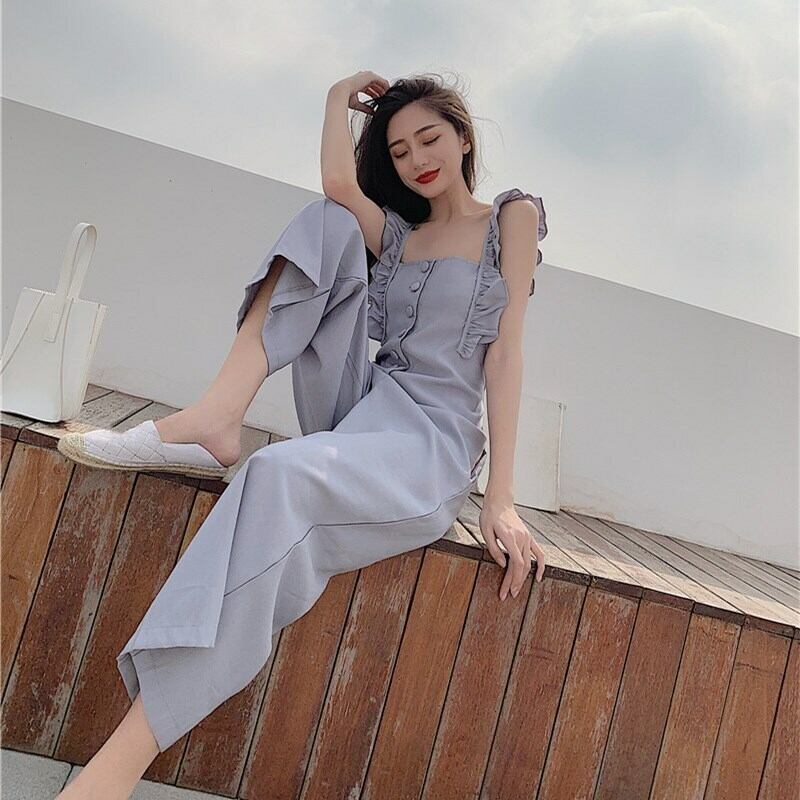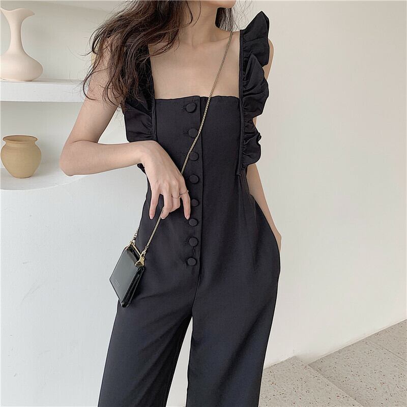 春 夏 レディース オールインワン サロペット スクエアネック フリルトップス 2色 袖なし ノースリーブ ハイウエスト 無地 韓国 おしゃれ デート 女子会 お呼ばれ SY-5-163 | dress_sugar_moon