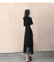 春 夏 レディース 黒ワンピース 大きいサイズ セットアップ サマードレス エレガント シースルー 透け感 ブラック 黒 半袖 ロング丈 かわいい おしゃれ FA-1096 | dress_sugar_moon
