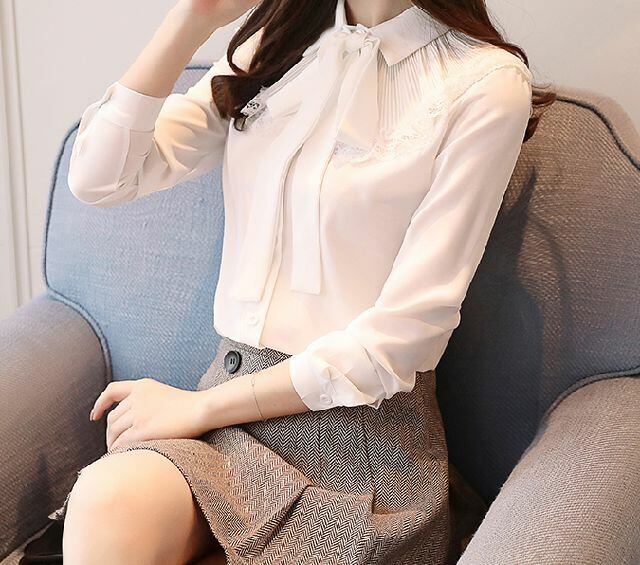 春 夏 レディース 大きいサイズ シャツ ブラウス リボン付き シフォン フリル レース お出掛け デート リゾート 海 プール かわいい おしゃれ 韓国 きれいめ プチプラ KR-5-063 | dress_sugar_moon