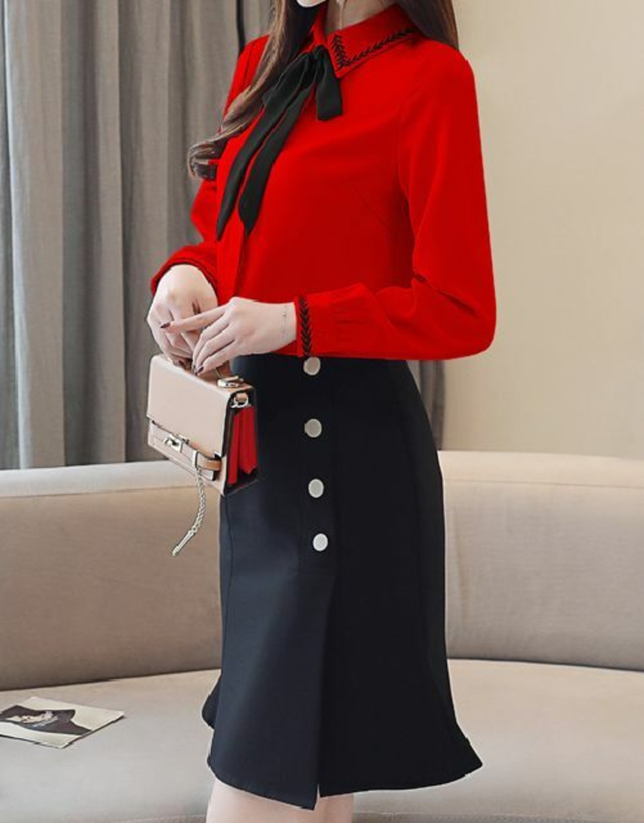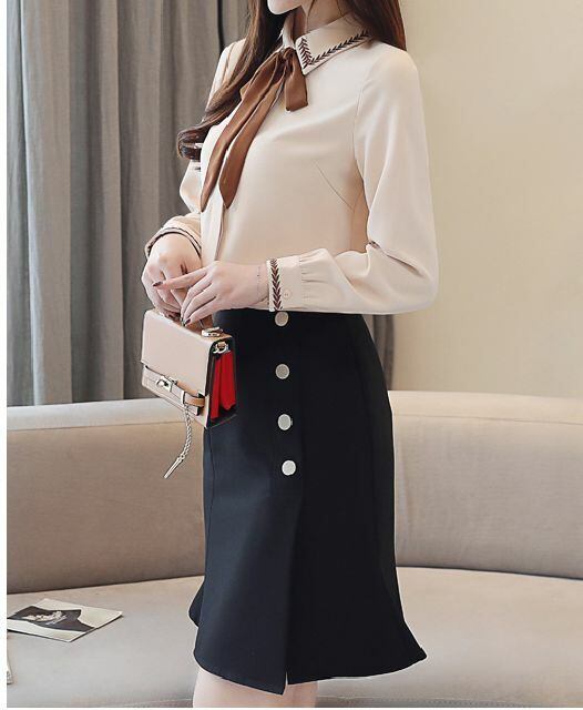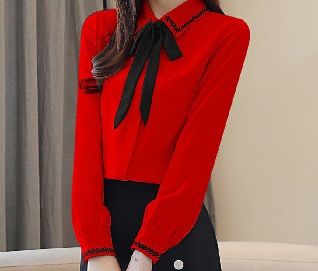 春 夏 レディース 大きいサイズ シフォンシャツ ブラウス オフィス 襟付きトップス リボン付き 刺繍 お出掛け デート リゾート 海 プール かわいい おしゃれ 韓国 きれいめ プチプラ KR-5-064 | dress_sugar_moon