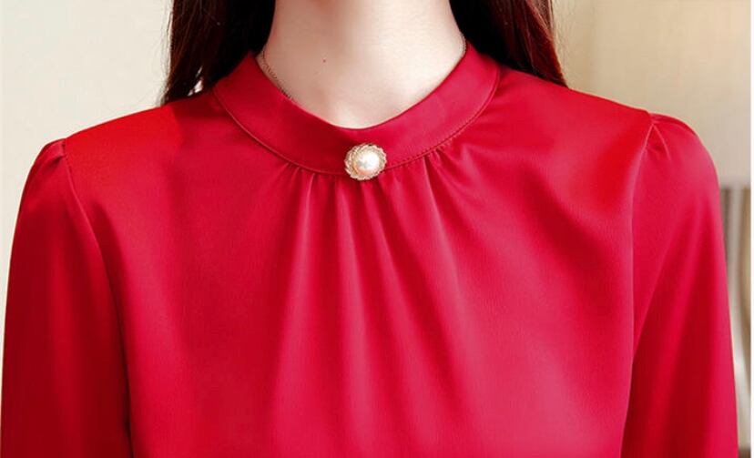春 夏 レディース シャツブラウス 大きいサイズ トップス オフィス OL ワンポイント 長袖 4カラー 白 緑 赤 ベージュ 通勤 普段着 おしゃれ着 仕事着 デート おでかけ かわいい おしゃれ YN-5-86 | dress_sugar_moon