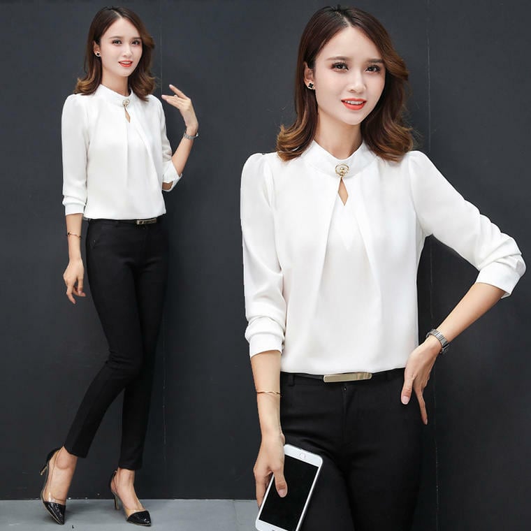 春 夏 レディース シャツブラウス オフィス トップス 大きいサイズ 七分袖 韓国 OL 胸あき セクシー シンプル エレガント 通勤 普段着 おしゃれ着 白 桃 茶 かわいい おしゃれ 20代 30代 YN-5-91 | dress_sugar_moon
