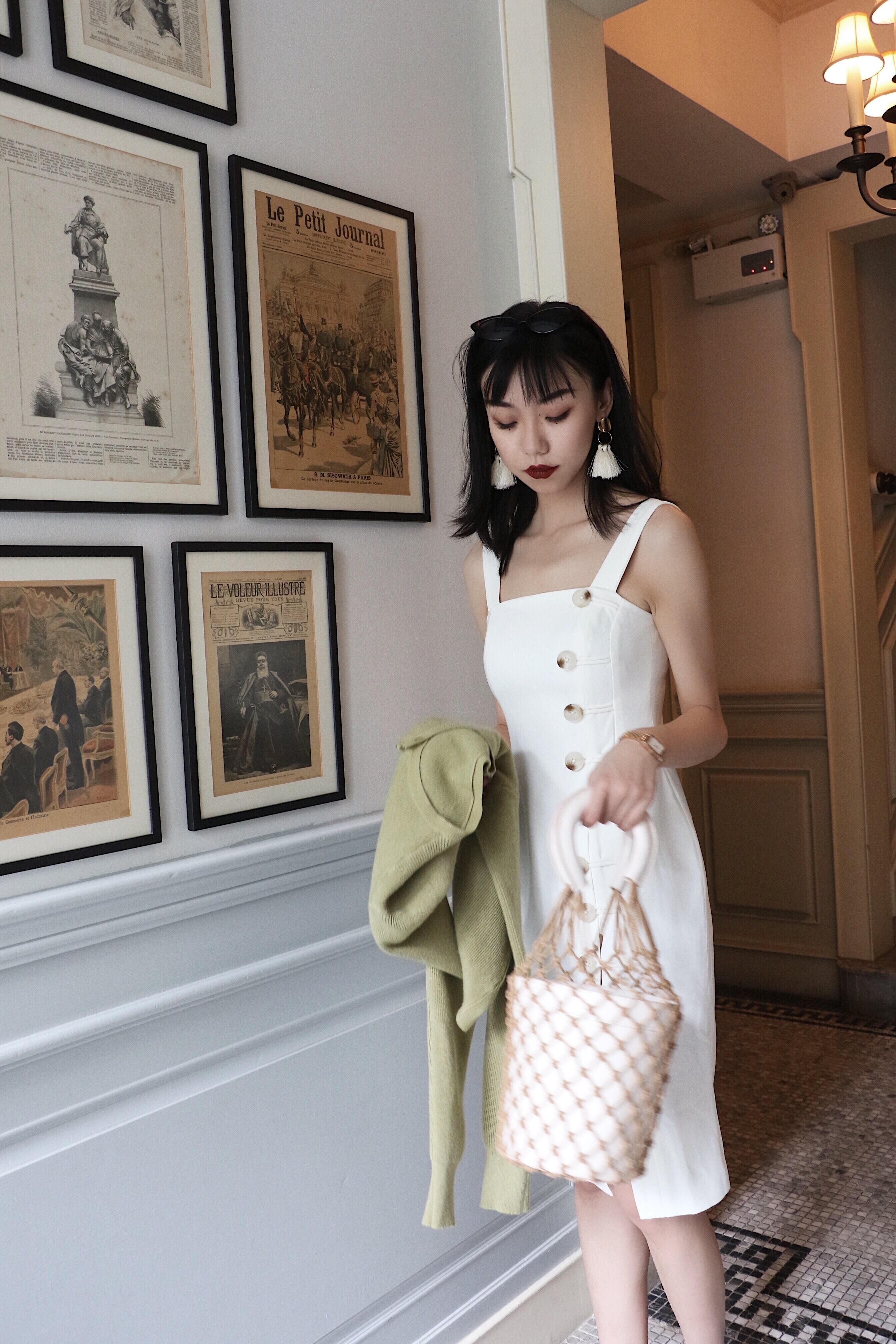 春 夏 レディース ワンピース 袖なし ノースリーブワンピース タイトワンピース ロングワンピース ロング丈 スリット サスペンダーワンピース ホワイト 白 リゾート 海 プール おしゃれ かわいい 韓国 きれいめ プチプラ SY-5-206 | dress_sugar_moon