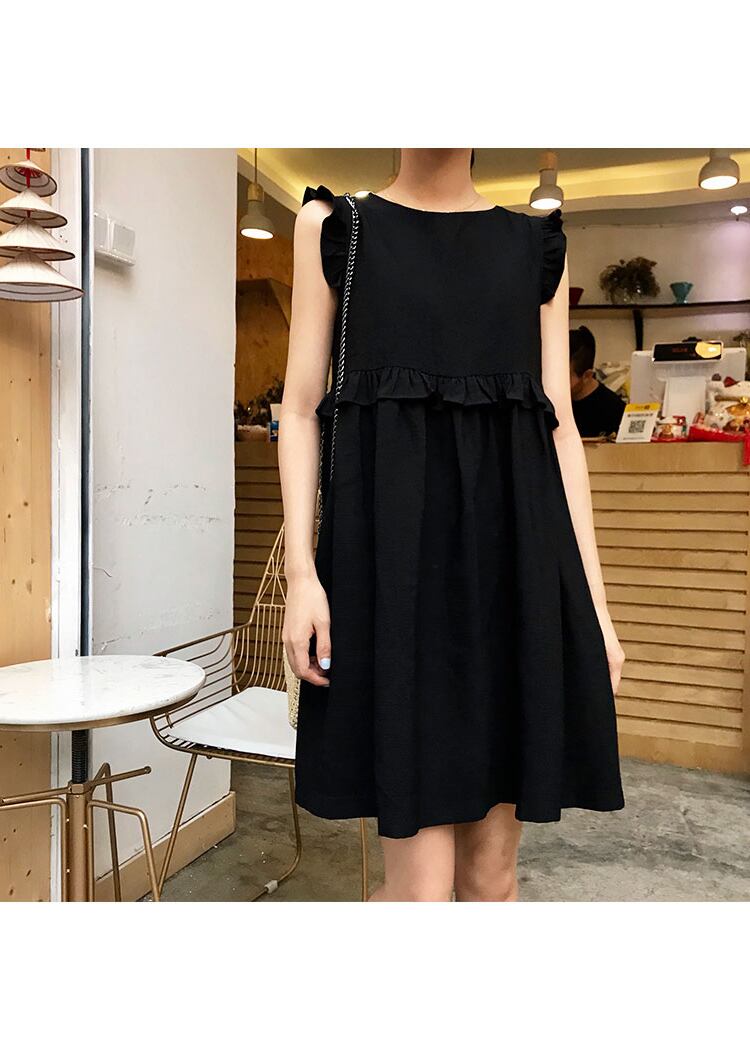春 夏 レディース ドレスワンピース ワンピース 黒 大きいサイズ 袖なし ハイウエスト ノースリーブワンピース フリルワンピース ブラック ミニワンピース リゾート 海 プール おしゃれ かわいい 韓国 きれいめ プチプラ SY-5-215 | dress_sugar_moon
