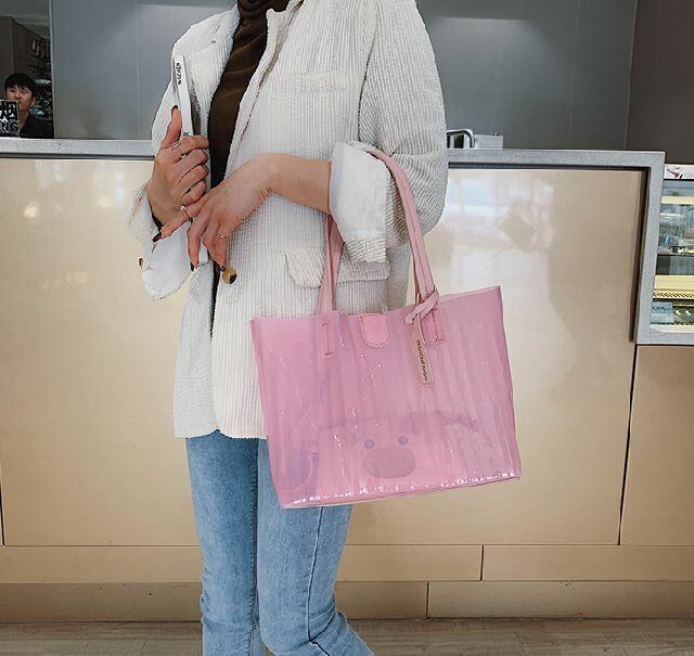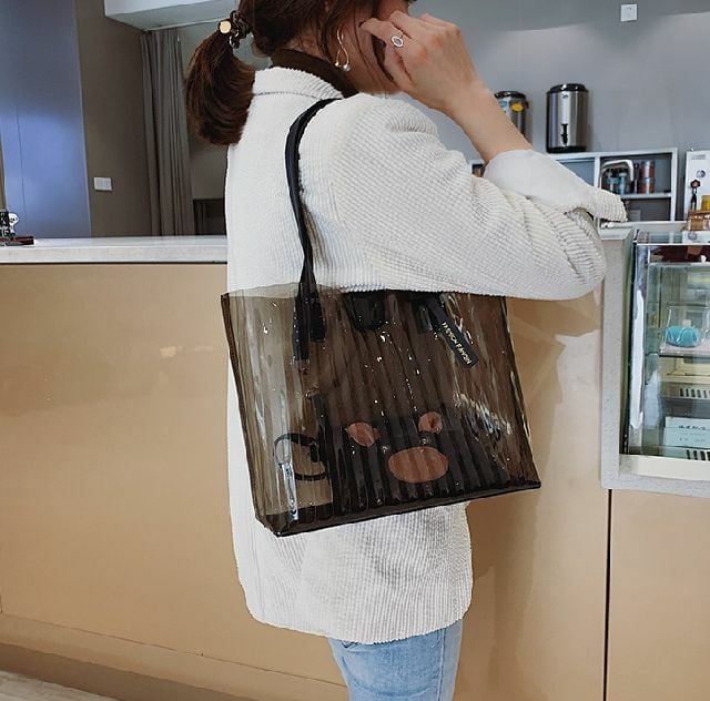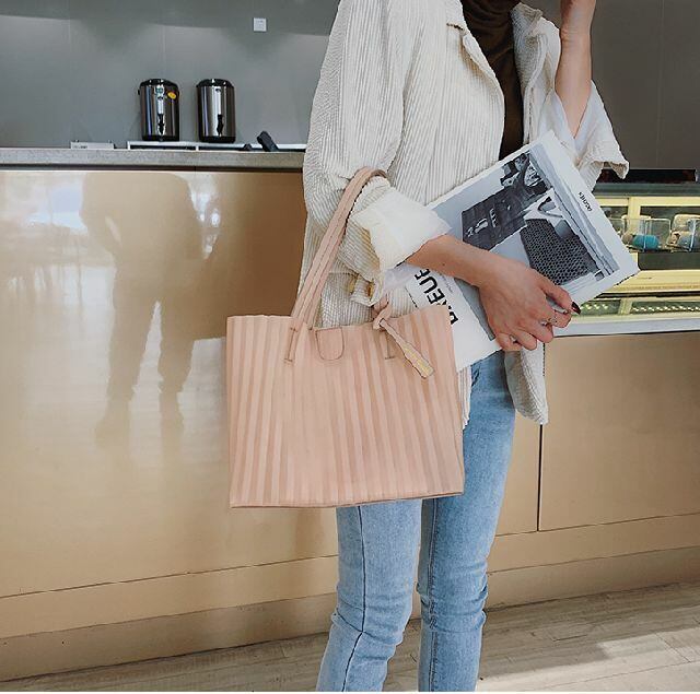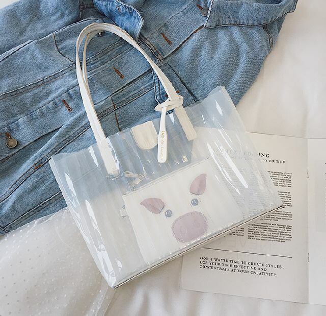 春 夏 レディース ハンドバッグ ショルダー バッグ 大容量 ストライプ ブタバッグ クリアバッグ 2way 肩掛け 通勤・通学 海 プール おしゃれ 韓国 きれいめ プチプラ KR-5-084 | dress_sugar_moon