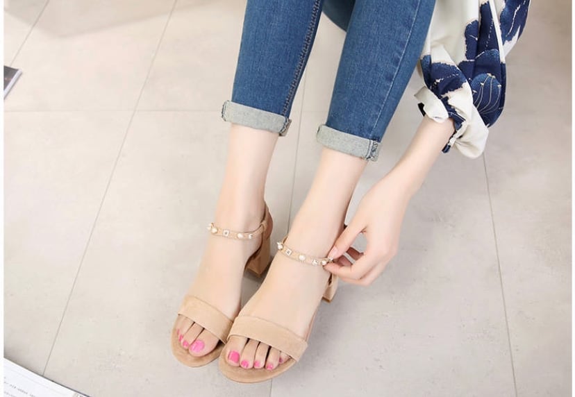 春 夏 レディース 靴 サンダル ヒール ローヒール パンプス アンクルベルト パール ビジュー 大人 可愛い パーティー 結婚式 披露宴 二次会 デート 通勤 OL YN-5-98
