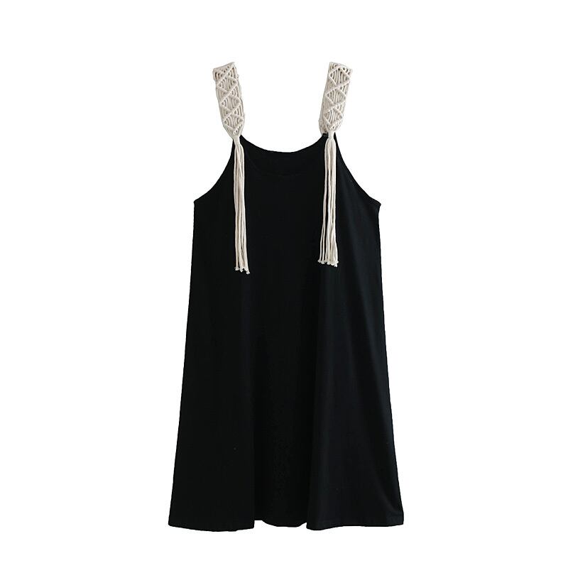 夏 レディース 黒ワンピース 大きいサイズ ノースリーブ カジュアル ロングワンピース ロング丈 ブラック 黒 タッセル リゾート 海 プール かわいい おしゃれ 韓国 きれいめ プチプラ FA-1166 | dress_sugar_moon