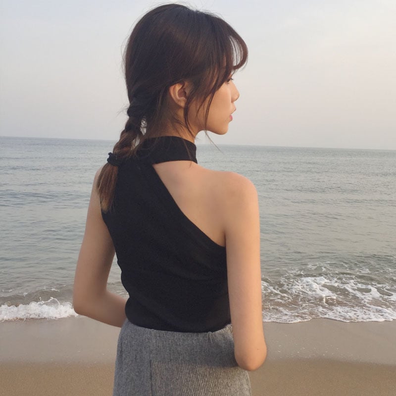 春 夏 レディース シャツ ブラウス ワンオフショル 袖なし ノースリーブ 3色 ボトルネック トップス 可愛い トップス 袖なし トップス ワンオフショル 韓国トップス タイトトップス ボトルネックトップス リゾート 海 プール おしゃれ かわいい 韓国 きれいめ プチプラ SY-5-233 | dress_sugar_moon