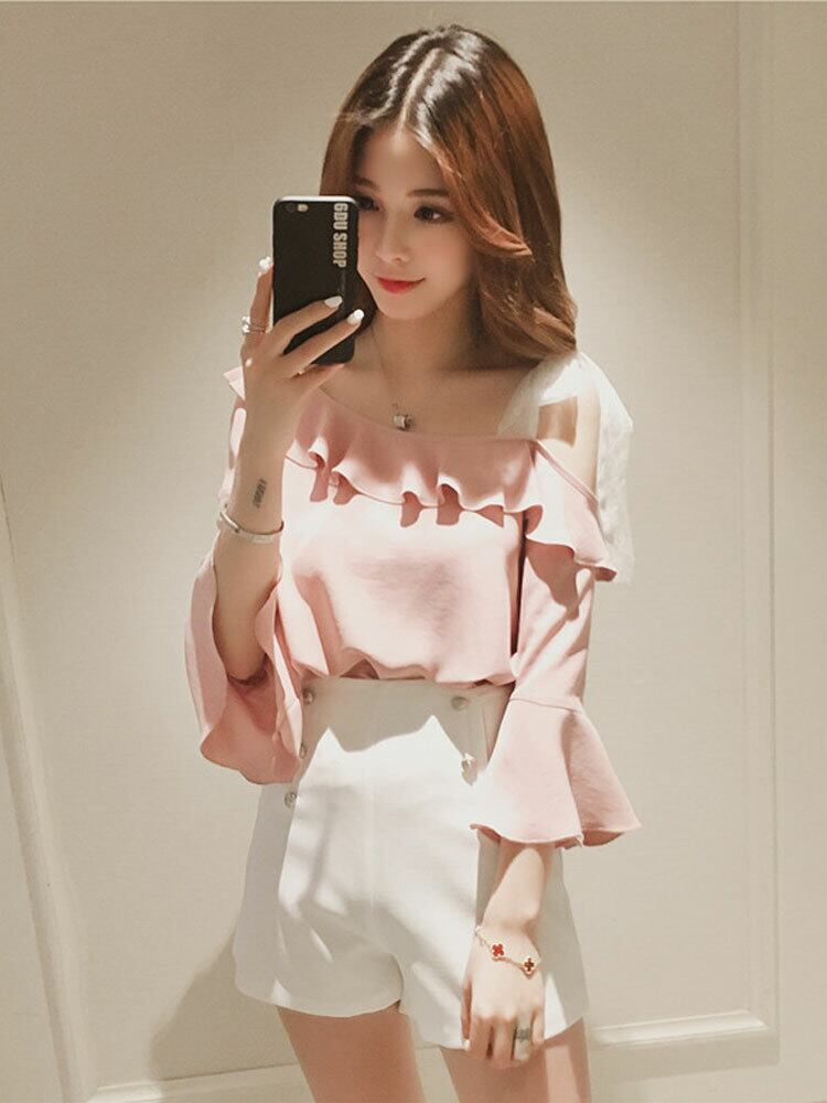 春 夏 レディース シャツ ブラウス ワンオフショル 大きいサイズ 肩見せ 3色 トップス かわいい トップス 大きいサイズ トップス 七分丈 トップス 肩見せ リゾート 海 プール おしゃれ かわいい 韓国 きれいめ プチプラ SY-5-244 | dress_sugar_moon