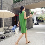春 夏 レディース ワンピース 大きいサイズ シンプル 無地 ラウンドネック ノースリーブ 膝上 スリット 5カラー 緑 紫 水色 白 灰 お散歩 おでかけ おそろい 部屋着 YN-5-115 | dress_sugar_moon