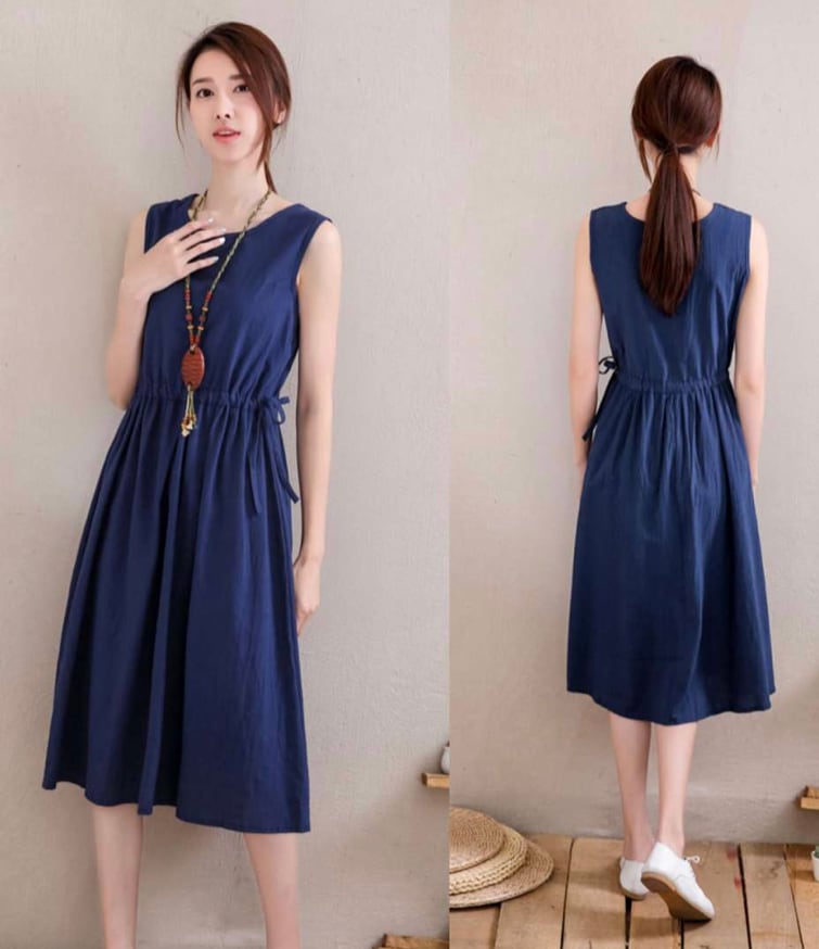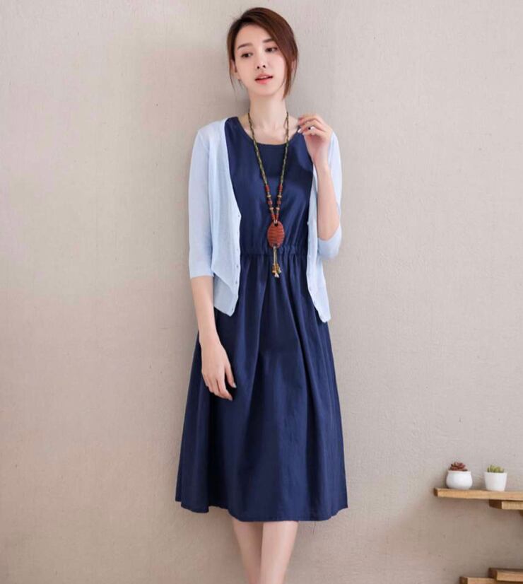 春 夏 レディース ワンピース 大きいサイズ セットアップ カーディガン ラウンドネック ノースリーブ 袖なし ミドル丈 ウエストリボン 4カラー 紺 緑 水色 白 爽やか シンプル 上品 おしゃれ デート おでかけ お散歩 YN-5-121 | dress_sugar_moon