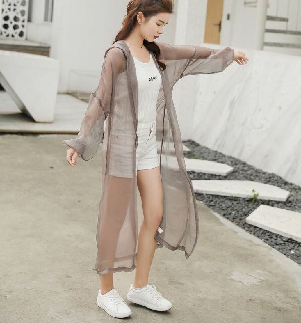 春 夏 レディース カーディガン パーカー 大きいサイズ 透け感 ロング丈 冷房対策 薄手 長袖 羽織り デートリゾート 海 プール かわいい おしゃれ 韓国 きれいめ プチプラ KR-5-105 | dress_sugar_moon