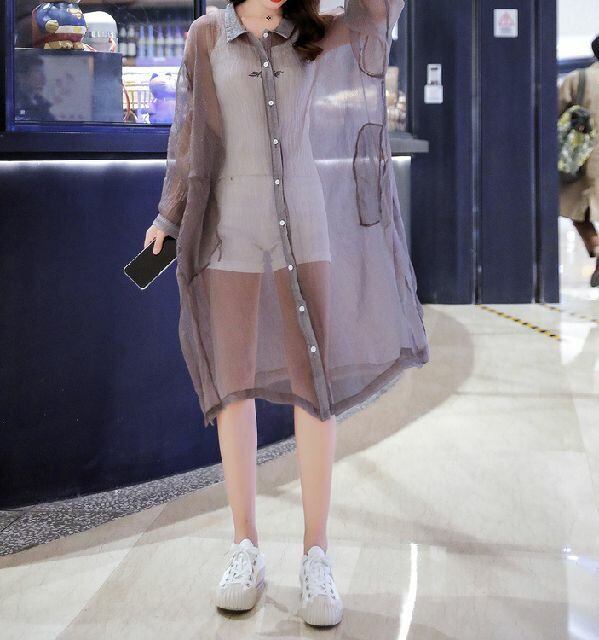 春 夏 レディース カーディガン ブラウス シャツ 大きいサイズ 透け感 ロング丈 冷房対策 薄手 長袖 羽織り デートリゾート 海 プール かわいい おしゃれ 韓国 きれいめ プチプラ KR-5-106 | dress_sugar_moon