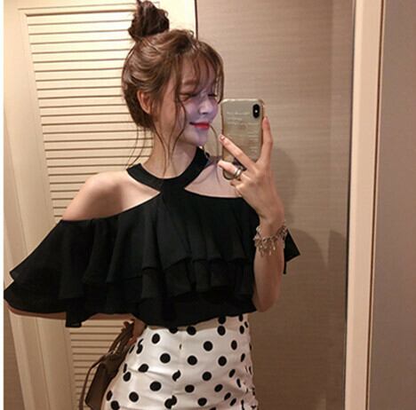 春 夏 レディース トップス 半袖 大きいサイズ オフショルダー ブラック 黒 セクシー フリル きれいめ リゾート 海 プール かわいい おしゃれ 韓国 きれいめ プチプラ FA-1178 | dress_sugar_moon