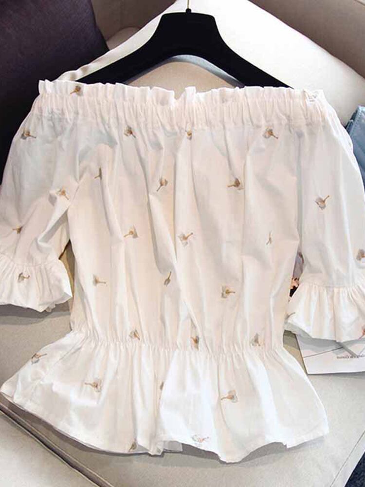 春 夏 レディース シャツブラウス オフィス トップス オフショルダー 花柄 ボリューム袖 リゾート 海 プール かわいい おしゃれ 韓国 きれいめ プチプラ FA-1189 | dress_sugar_moon