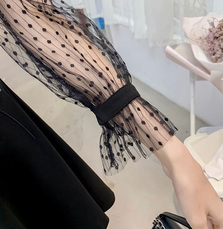 春 夏 レディース ワンピース 大きいサイズ ドレスワンピース Vネック 袖シースルー 透け ドット 水玉 ウエストスリム リボン ミニ丈 ミニワンピ ゴシック ゴスロリ 原宿系 デート おでかけ お散歩 パーティー YN-5-124 | dress_sugar_moon