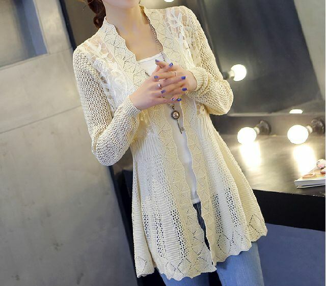 春 夏 レディース トップス かわいい ロングカーディガン ゆったり レース編み 透け感 冷房対策 薄手 長袖 羽織り デート リゾート 海 プール かわいい おしゃれ 韓国 きれいめ プチプラ KR-5-116 | dress_sugar_moon
