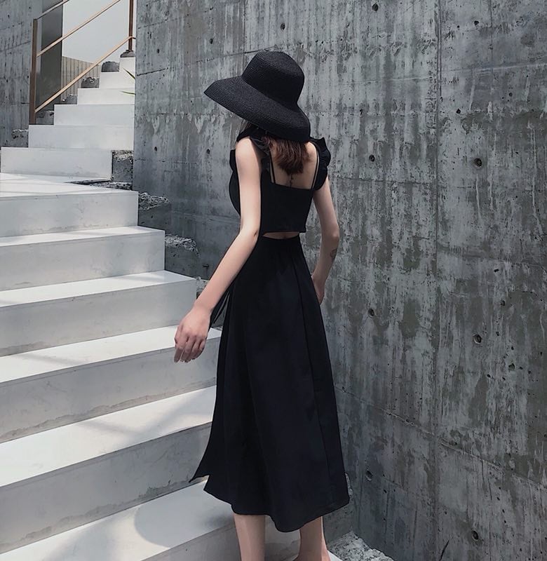 春 夏 レディース ワンピース ブラック 黒 袖なし スリットワンピース ノースリーブワンピース 背中見せワンピース ロングワンピース ロング丈 セクシー リゾート 海 プール おしゃれ かわいい 韓国 きれいめ プチプラ SY-5-261 | dress_sugar_moon
