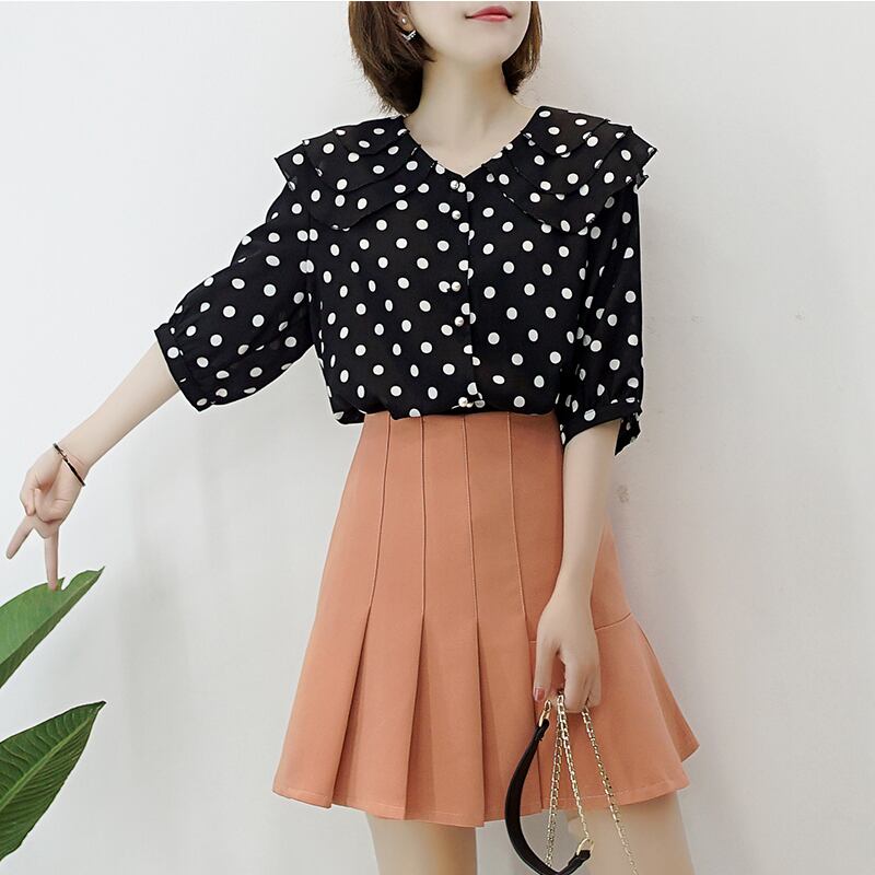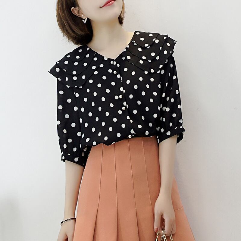 春 夏 レディース シャツブラウス 水玉 トップス 半袖 五分袖 レトロ ドット柄 水玉模様 リゾート 海 プール かわいい おしゃれ 韓国 きれいめ プチプラ FA-1197 | dress_sugar_moon