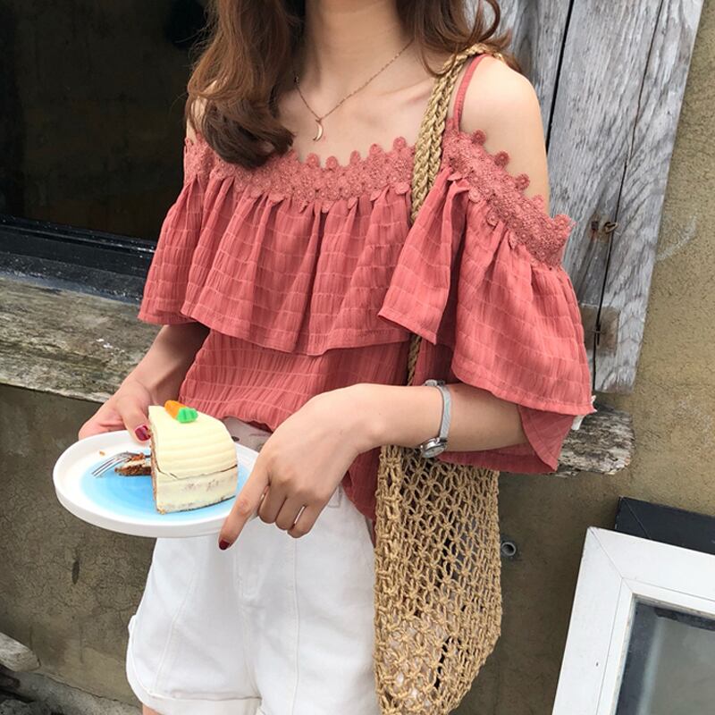 春 夏 レディース シャツブラウス オフィス トップス 半袖 オフショルダー キャミソール フリル きれいめ リゾート 海 プール かわいい おしゃれ 韓国 きれいめ プチプラ FA-1200 | dress_sugar_moon