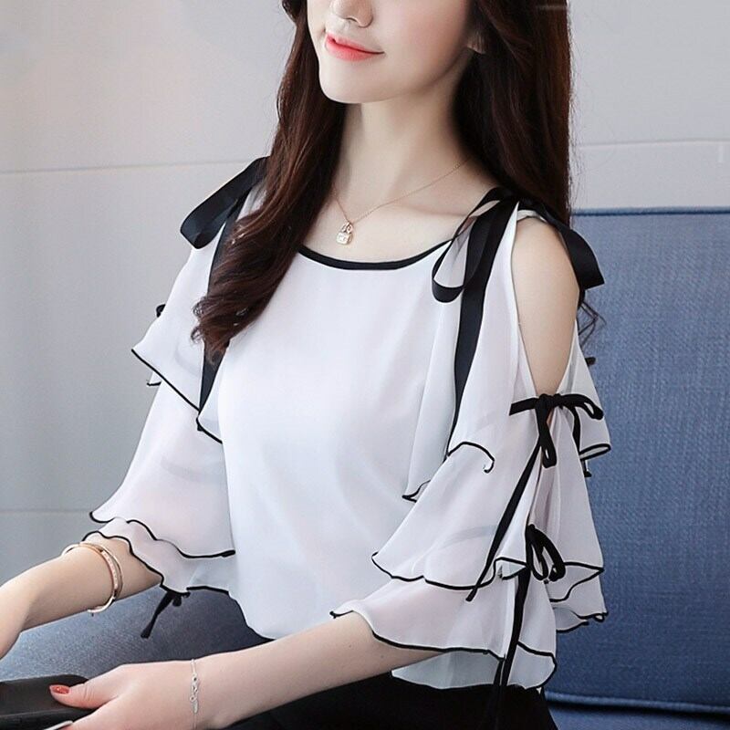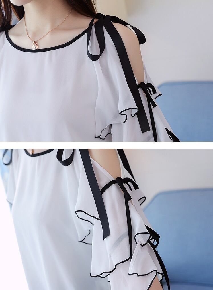 春 夏 レディース シャツブラウス オフィス トップス 大きいサイズ 半袖 リボン 肩出し シースルー 透け感 無地 ドット柄 花柄 リゾート 海 プール かわいい おしゃれ 韓国 きれいめ プチプラ FA-1201 | dress_sugar_moon
