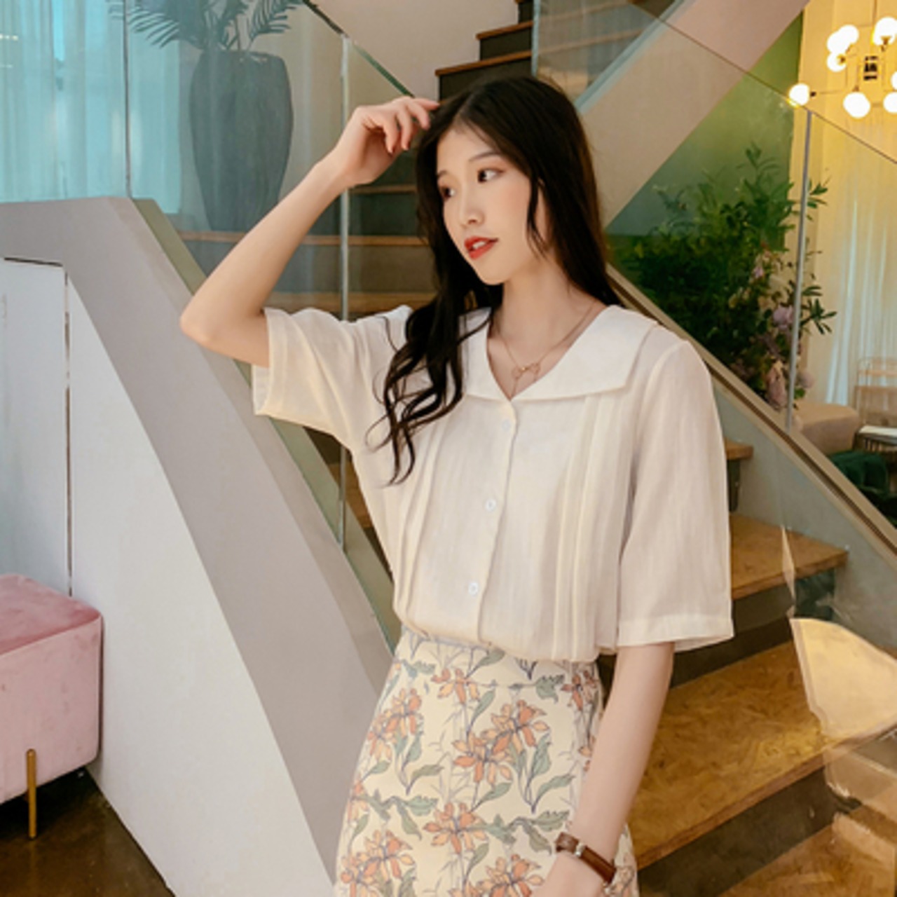春 夏 レディース シャツブラウス オフィス トップス 半袖 ソリッドカラー Vネック シンプル オフィスカジュアル リゾート 海 プール かわいい おしゃれ 韓国 きれいめ プチプラ FA-1214 | dress_sugar_moon